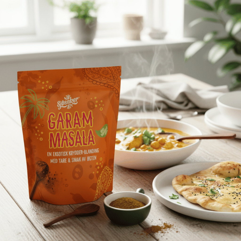 Spice opp middagen med vår indiske krydderblanding! Holder til 4 eller 5 middager! Ekte norsk Tare-Masala fra Sotra med frisk smak og nyttige næringsstoffer. Vårt Garam Masala krydder er et produkt med nøye utvalgte ingredienser for den beste smaksopplevelsen, men med redusert saltinnhold og nyttige vitaminer og mineraler. Enten det er lam, kylling, linser eller grønnsaker kan du og familie prøve dere på en indisk vri til middag! Teknisk info: Vekt: 200 gram Innhold: Chilipulver, spisskummen, salt, pepper, søl, paprika, oregano, løkpulver, hvitløkspulver, chiliflak Salt: 8% Inneholder: 28,9ug JOD pr.1g Allergener: Kan inneholde spor av skalldyr Oppbevares tørt og mørkt