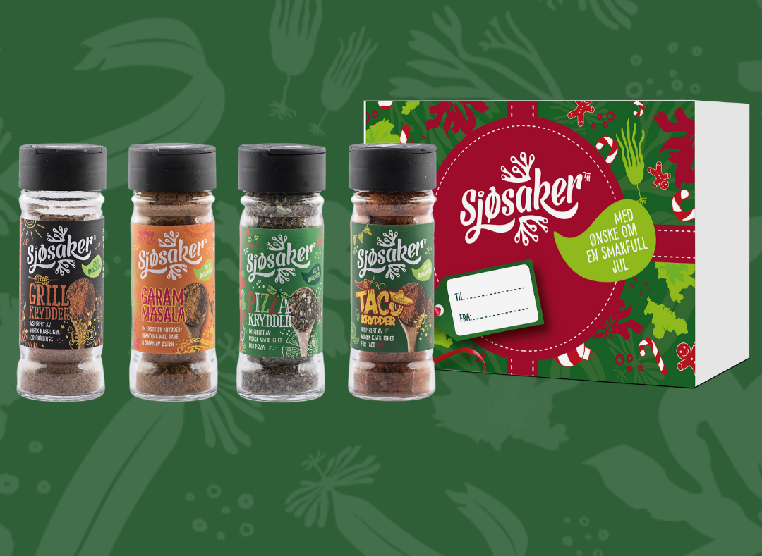 🎁 Gi en smak av havet til jul! En eksklusiv gaveboks med Pizzakrydder, Tacokrydder, Grillkrydder og Garam Masala – alle beriket med næringsrik tang og tare for en unik smaksopplevelse.